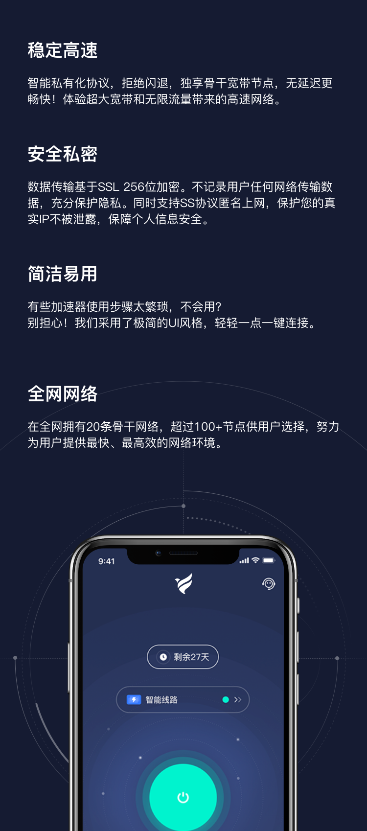 我们跟友商不同,我们提供的所有线路都是无限流量的,并且也不会限制用户的网络速度,我们线路使用的是昂贵的专线,来确保我们每位用户的上网体验都是高速且流畅的。